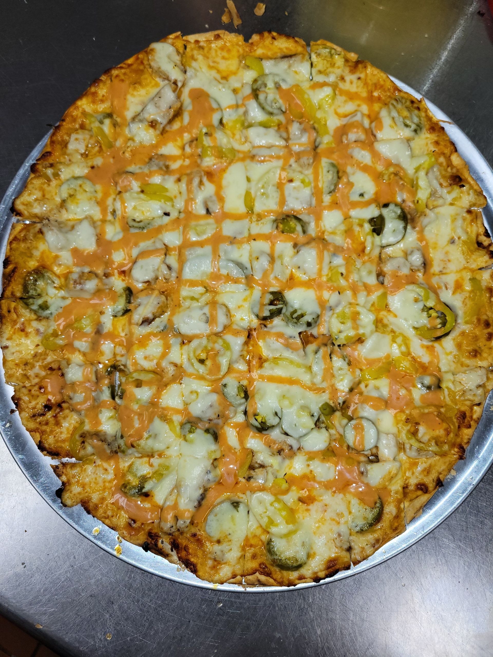 Ranch and BBQ base, chicken,, bacon, banana pepper